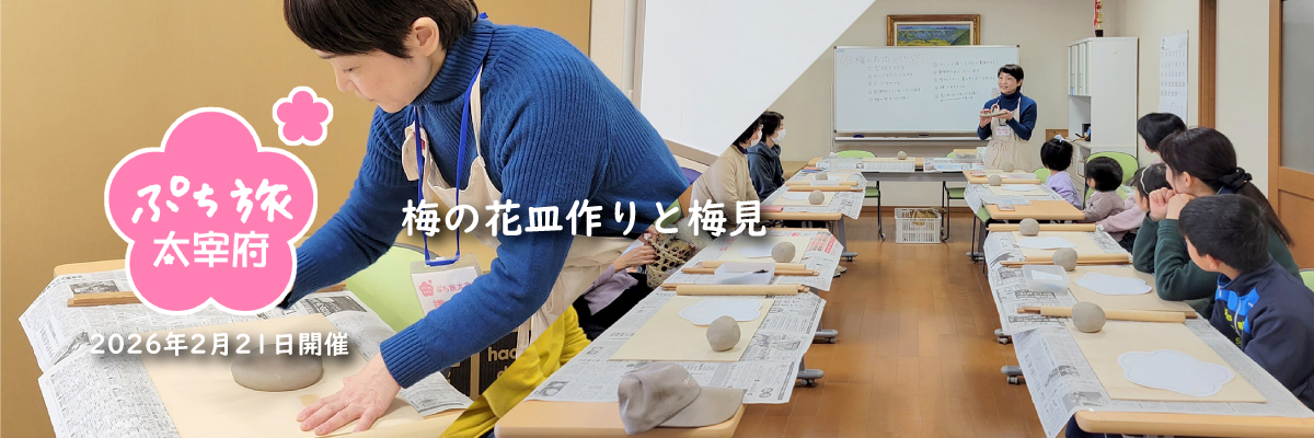 2月212026 ぷち旅太宰府 【ぷち旅】梅の花皿作りと梅見【4時間】 本コースはプレミアムコース「ぷち旅太宰府」です。 大宰府の梅が香る季節に、梅の花をモチーフにした梅の花皿(直径約12cm2枚、色は...