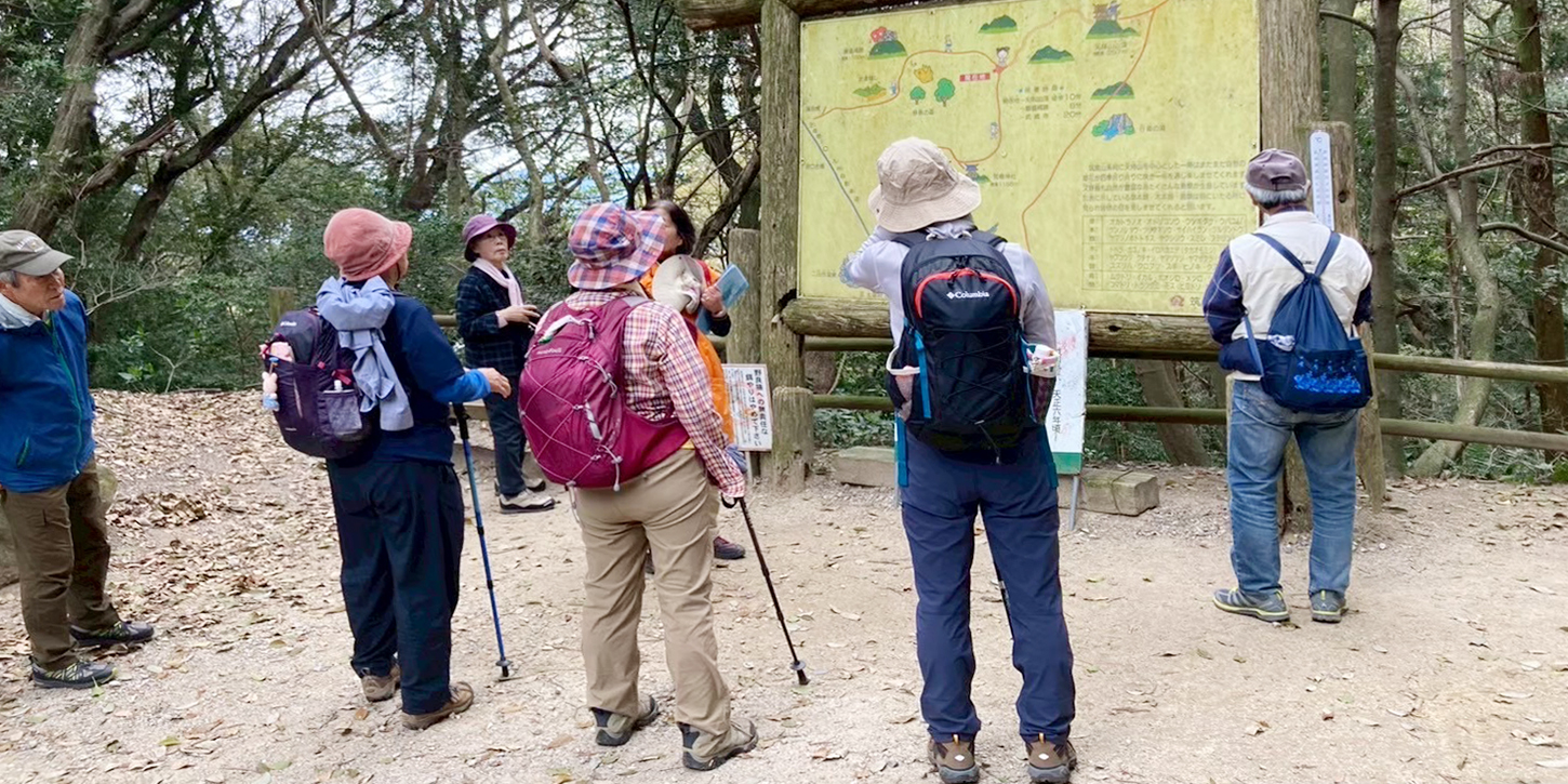 天拝山は気軽に登れる里山として麓の天拝公園と共に親しまれています。山中に立つ道真公の悲しい心情の歌碑や中世の山城跡、麓の古刹等歴史に触れながら春の里山歩きを楽しみます。
